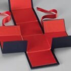 Gift boxes with magnetic closure made with durable cardboard covered by coloured paper or plastic.